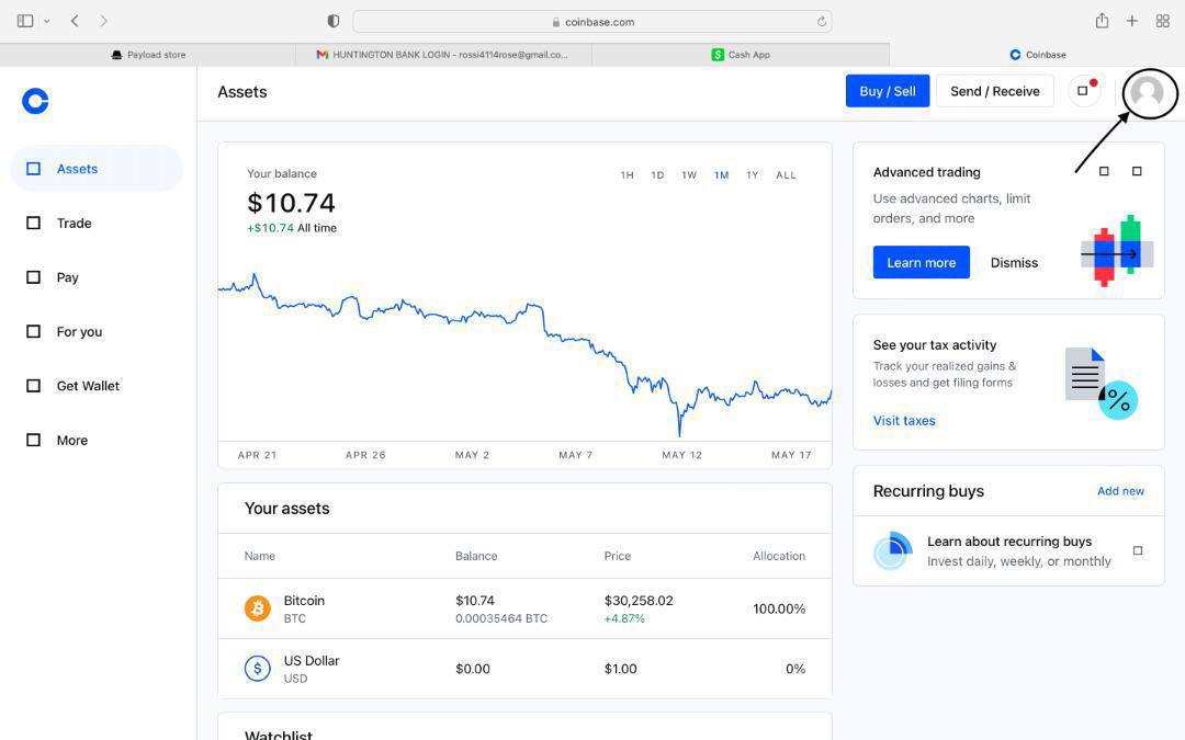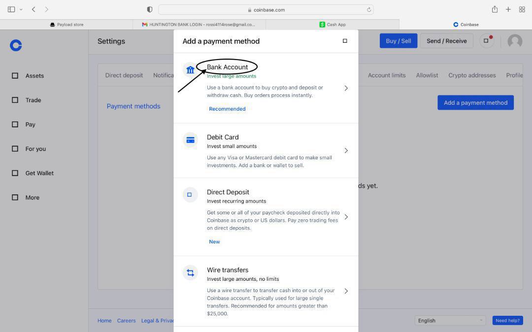 Link bank log with coinbase, You tap on your profile.